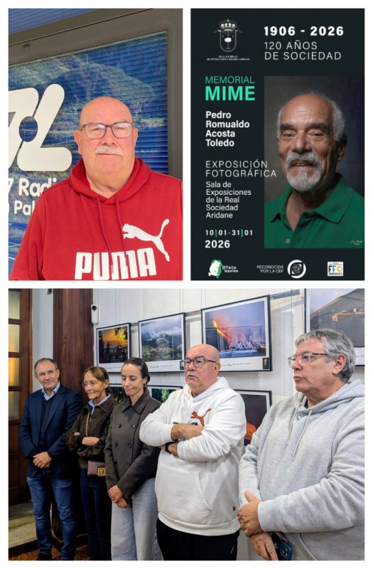 El 15 de enero de 2026, jueves, en 7.7 La Palma Radio volvieron a entrevistar al presidente de la AFP (Asociación @FOTO La Palma) y de la FFC (Federación Fotográfica Canaria), respectivamente Rubén López y Tomás Vento, fueron entrevistados a raíz de la Exposición Memorial Mime, que se esta llevando a cabo en la Sala de Exposiciones de la Real Sociedad de Instrucción y Recreo Aridane (coincidiendo con su 120 aniversario), en la Plaza de España nº 1 de Los Llanos de Aridane, la cual permanecerá abierta desde el 10 al 31 de enero de 2026 en horario de Martes a Sábado de 10 a 21 horas y Domingo y Lunes de 11 a 14.30 horas.